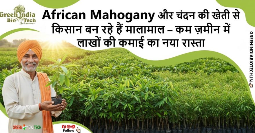 *Green India Bio Tech – Plant Company & Nursery* किसानों को अफ्रीकन महोगनी, चंदन, सागवान और अन्य मूल्यवान पौधों की आपूर्ति और मार्गदर्शन प्रदान कर रही है।